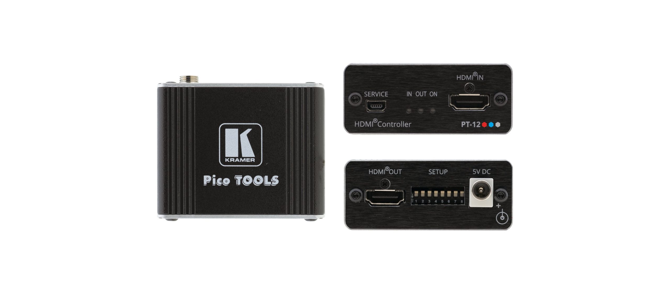 PT-12 es un controlador de encendido y apagado de TV/pantalla habilitado para CEC y un procesador EDID extendido para señales HDMI con una resolución de hasta 4K a 60 Hz . Cuando PT-12 detecta un enchufe de cable HDMI, enciende automáticamente la pantalla conectada y la apaga automáticamente cuando se detecta una pérdida de señal. PT-12 es una herramienta de procesamiento EDID para controlar las funciones EDID.